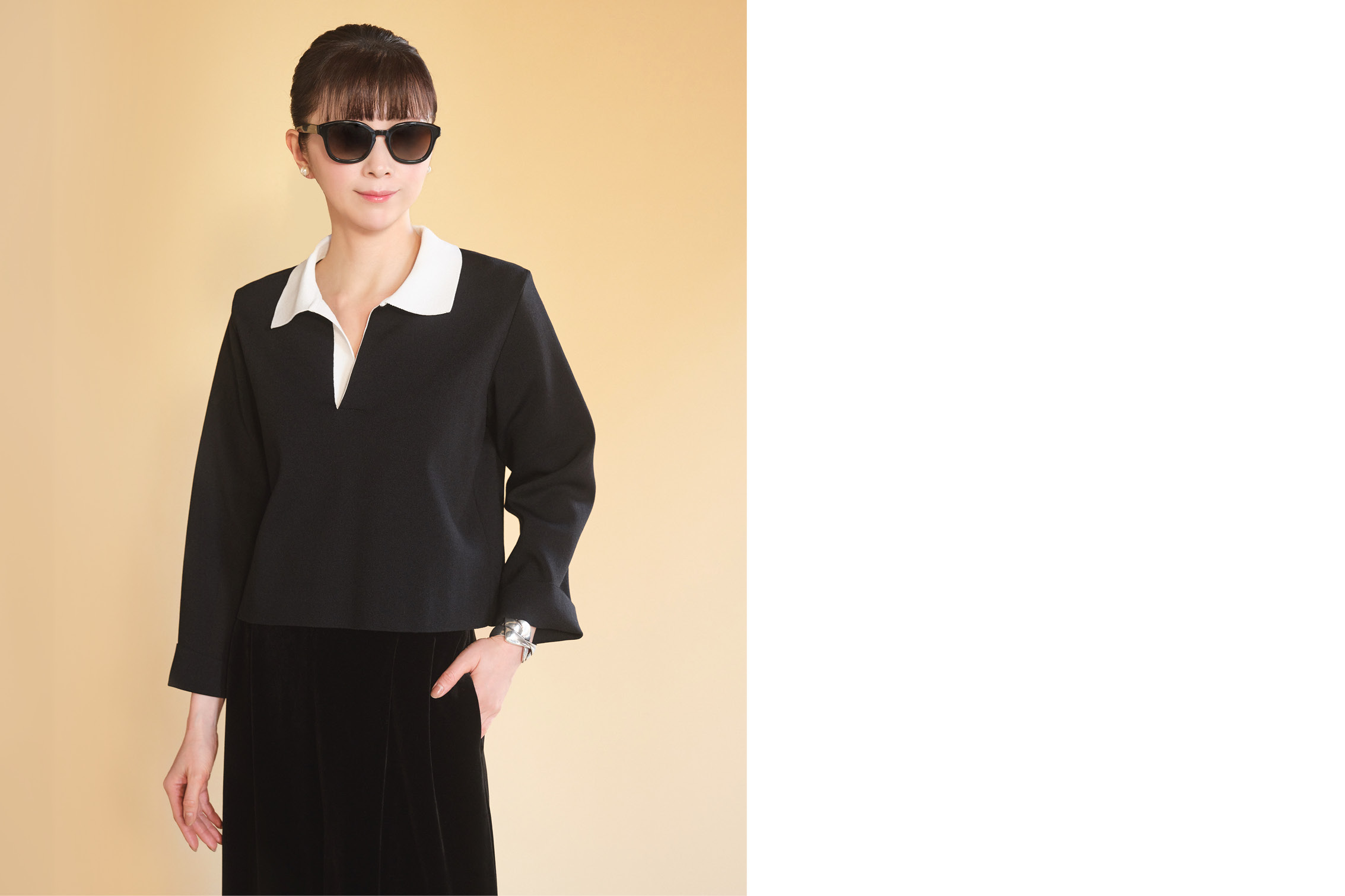 Knit Top "Town & Country" (Black × White)