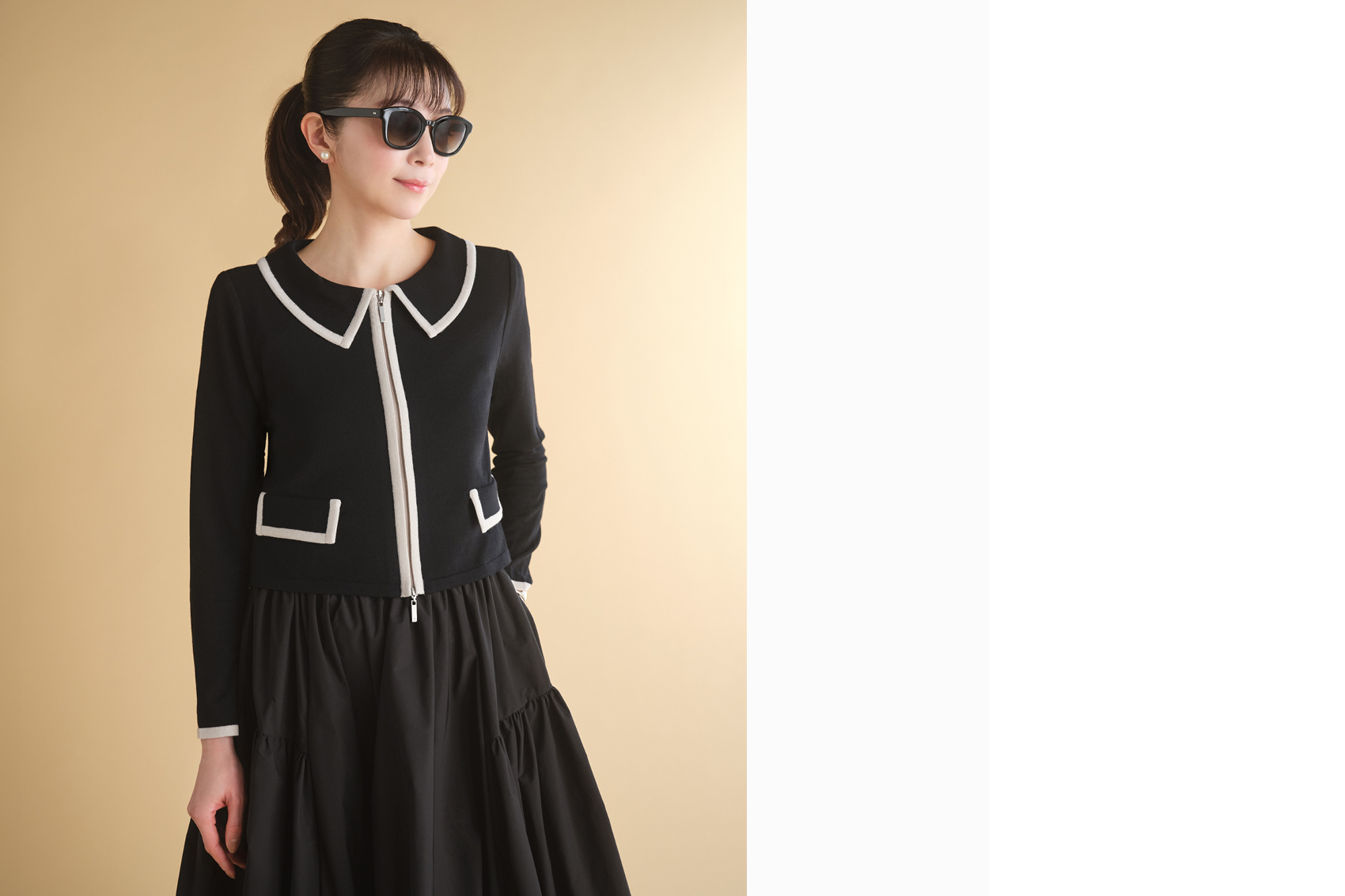 しっとりウールカーディガン“ Elegant Lady ” (Black×Beige)