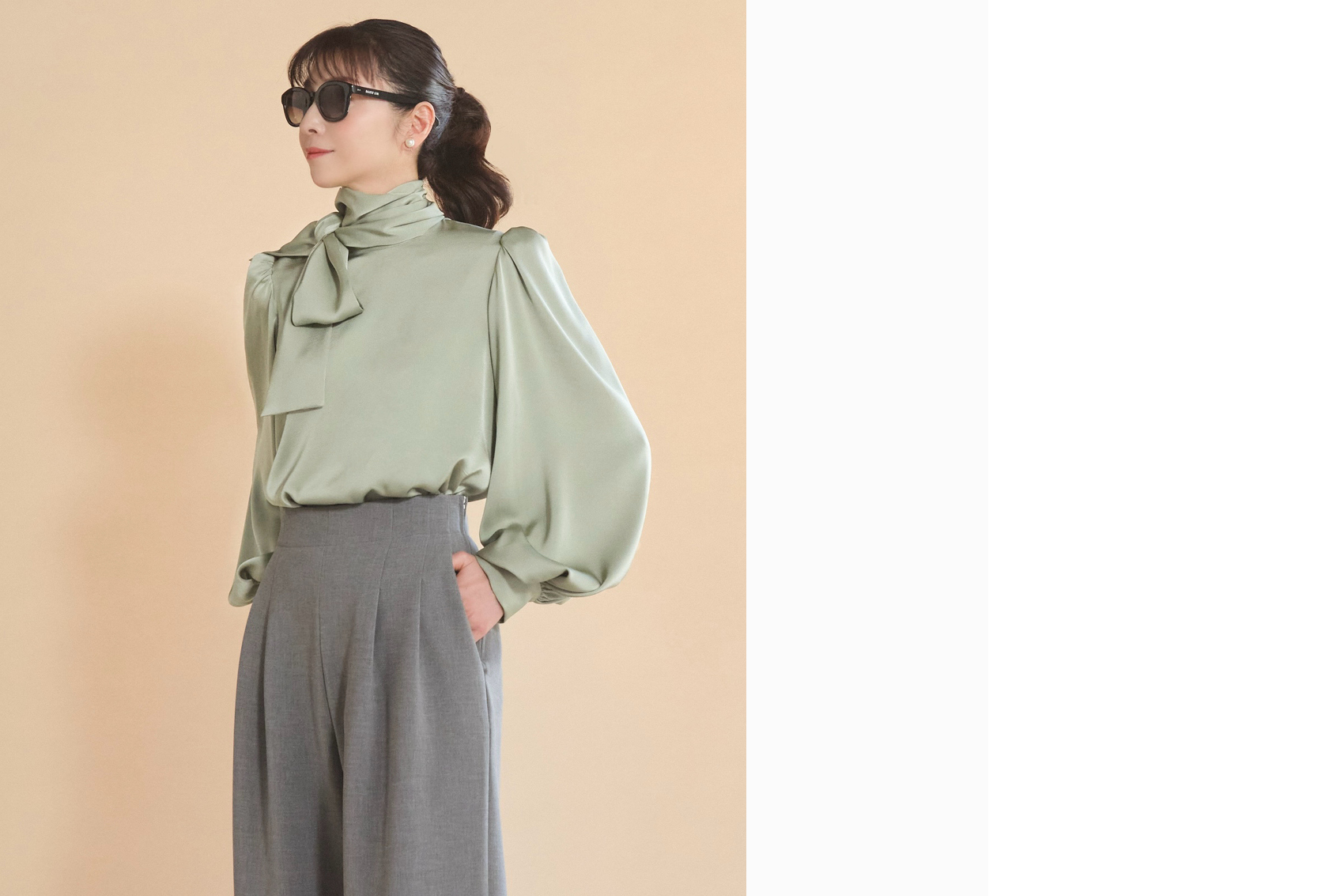 Blouse Daisy Elegant Ribbon (Powder Beige)