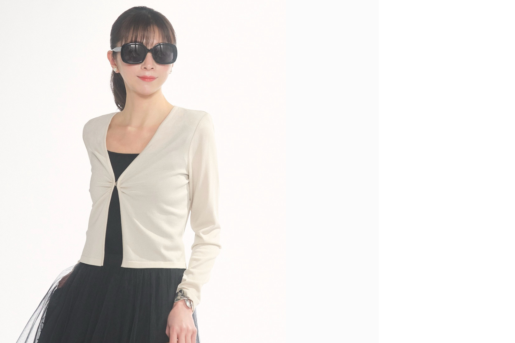 さらさら Knit "Style-Up Cardigan"(Powder Beige)