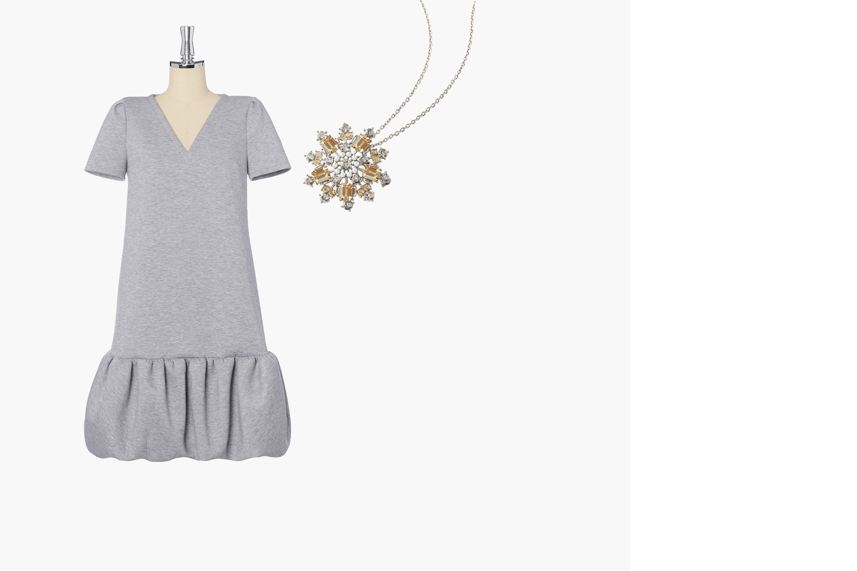 ミルフィーユ スウェット ジャージースフレドレス (Sophie Gray)&Power Stone Brooch & Necklace (Champagne Apricot)