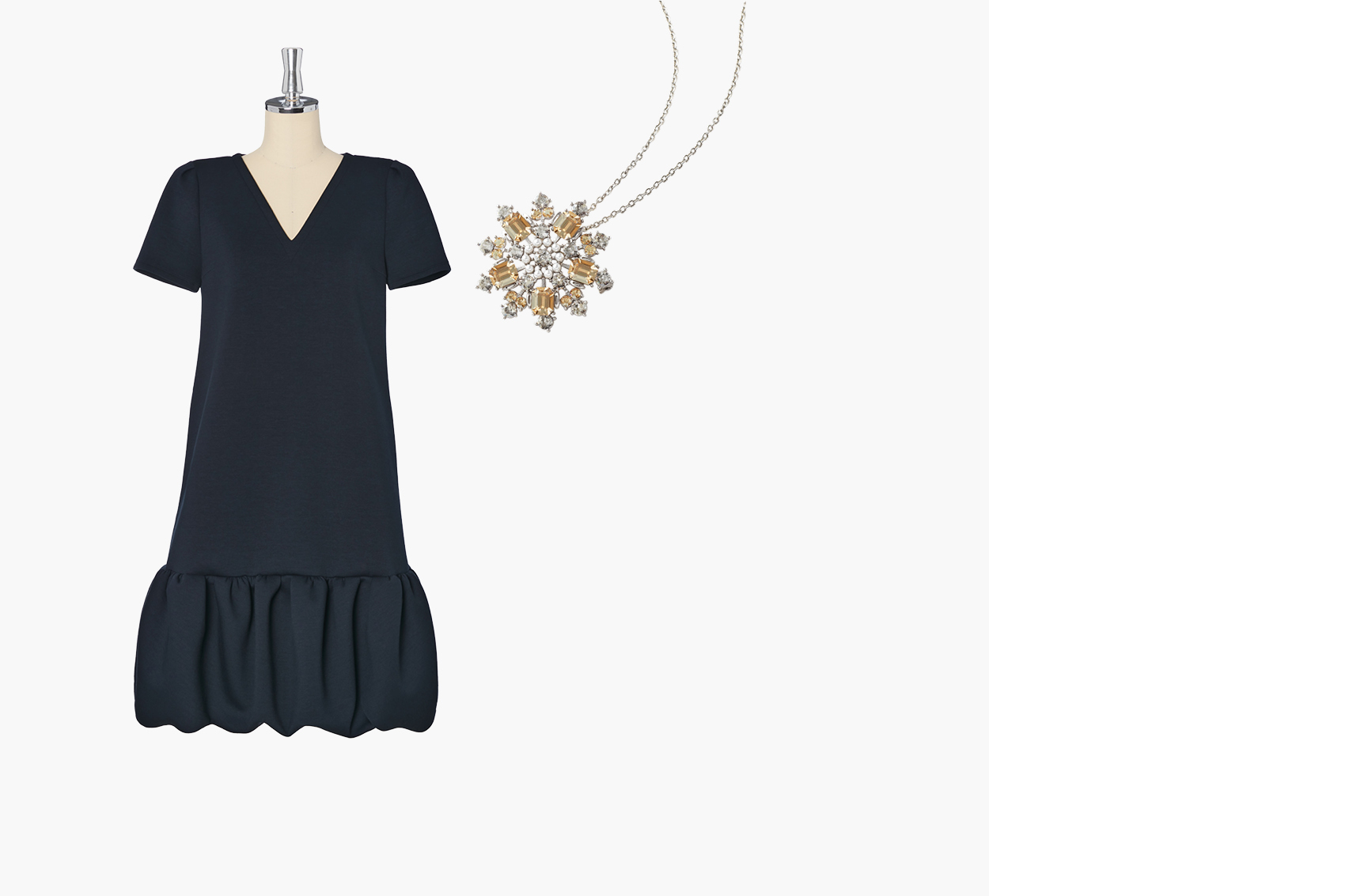 ミルフィーユ スウェット ジャージースフレドレス (Navy)&Power Stone Brooch & Necklace (Champagne Apricot)