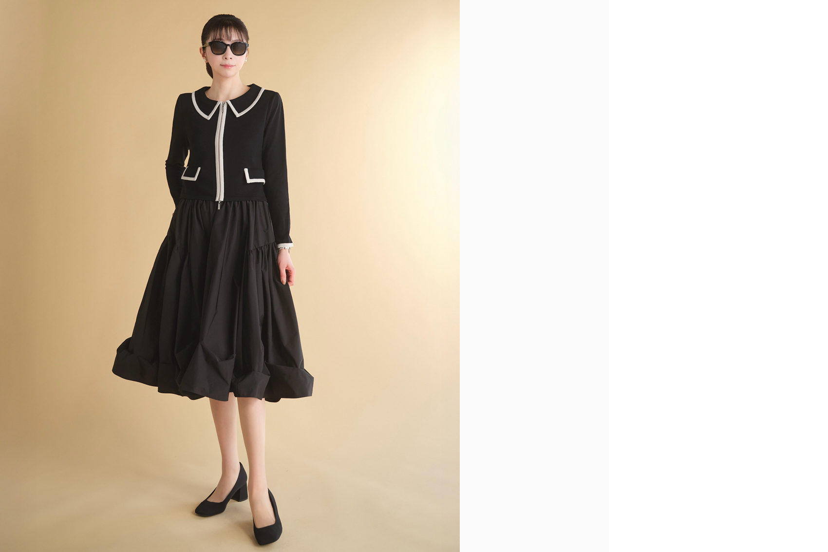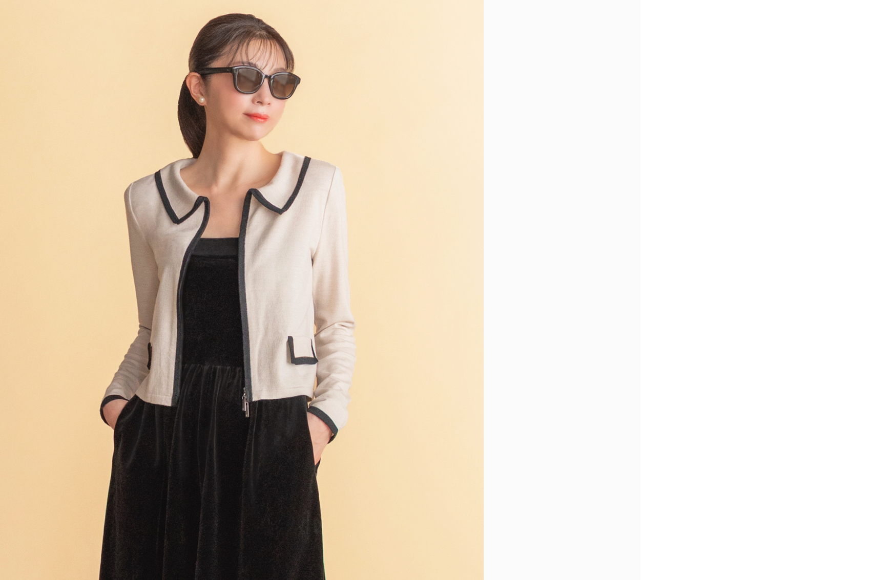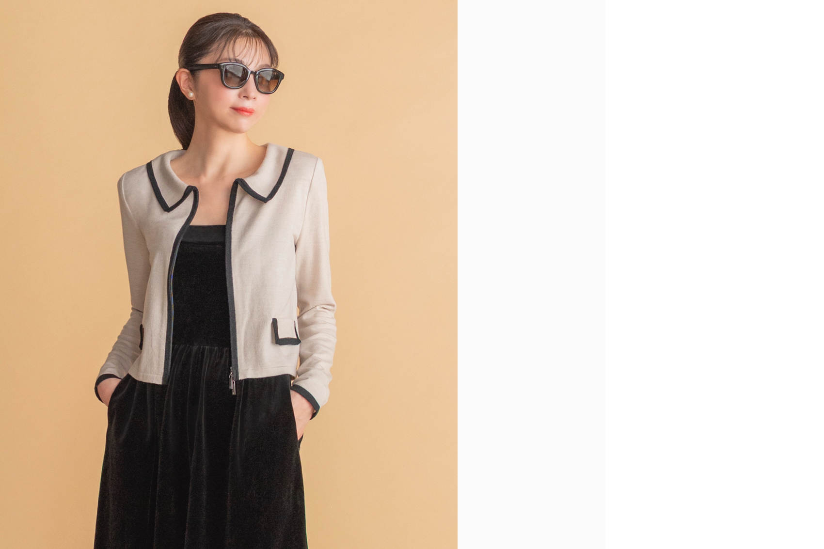 しっとりウールカーディガン“ Elegant Lady ” (Black×Beige)